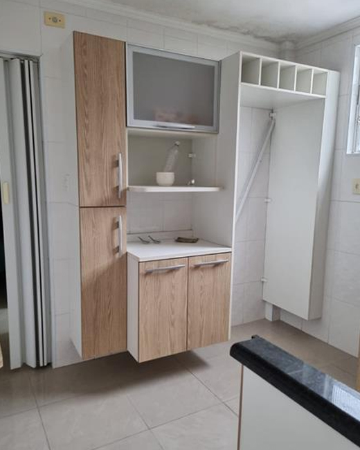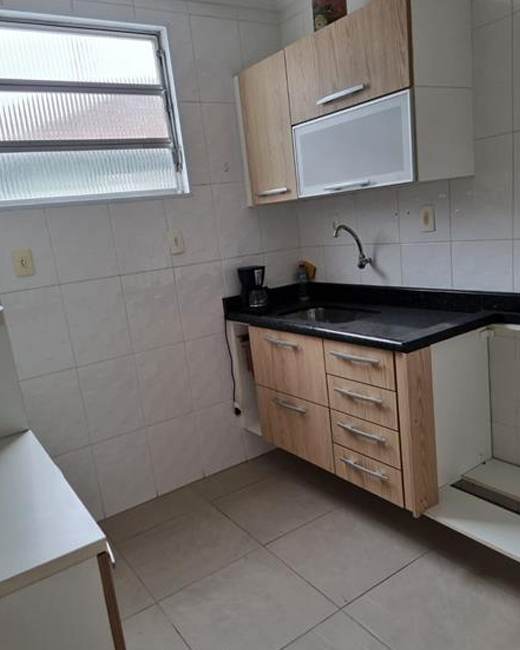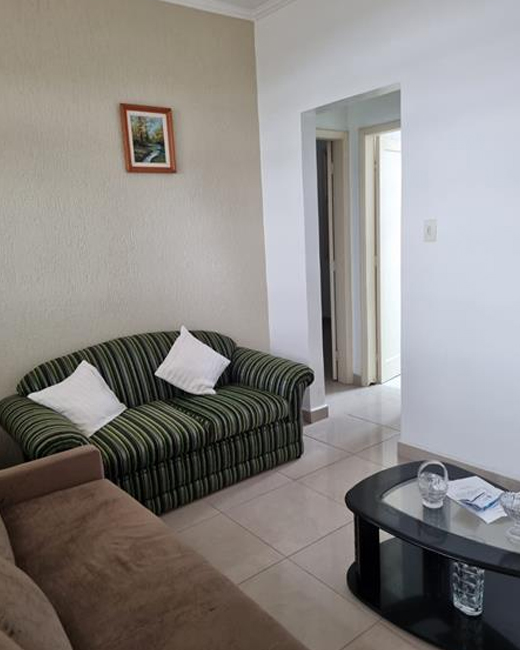 Apartamento com quarto, sala, cozinha, WC e garagem coletiva.